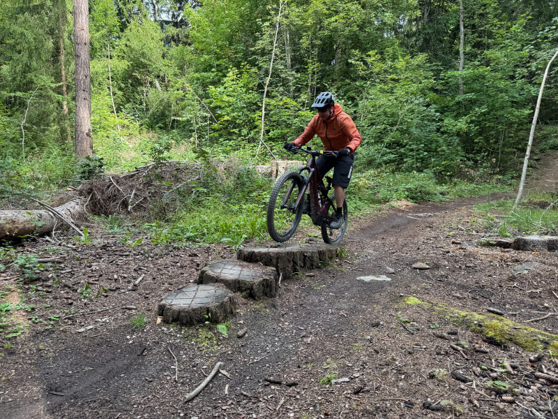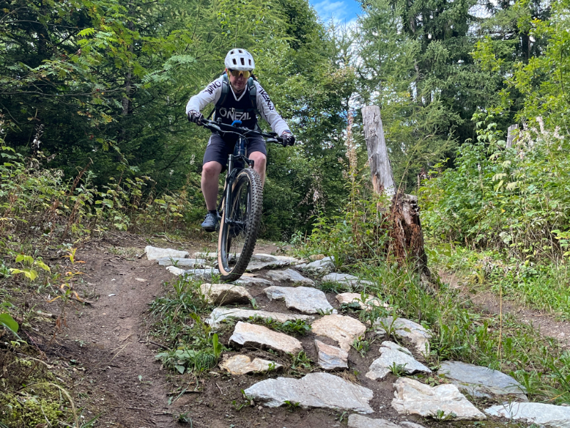 Der Crans Montana Skills Loop, wie wir ihn nennen, ist eine kleine Übungsrunde im Wald unterhalb von La Moubra, der eigentlich Family Forest Loop heisst, und mit vielen, gebauten Lines und Hindernissen, von Drops in verschiedenen Höhen, über einen Pumptrack, vielen Tables und Northshores, sowie Anliegern und sogar einem kleinen RockGarden, allen zur Verfügung steht und dazu dienen soll, Anfänger an die typischen Bike-Hindernisse heran zu führen und dazu einlädt, das ganze spielerisch zu erlernen. Eine ganz tolle Sache, finden wir… obwohl, jetzt ganz frische Anfänger sind wir ja nicht mehr, haben aber trotzdem unseren Spass auf der Runde!