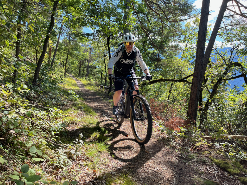 Und genau, mein Bike-Buddy FlowtrailRider trägt beim Biken übrigens eine rev Sky/Black, ist fast genau so begeistert von der Brille wie ich, bemängelt allerdings kurz auftretende, helle Punkte bei direkter, punktueller Sonneneinstrahlung, was ich aber bei meiner Optray Orion, auch nach mehrfachen Versuchen, nicht reproduzieren kann…